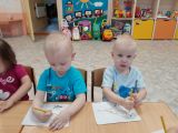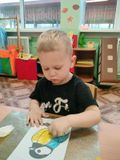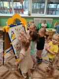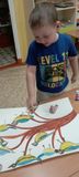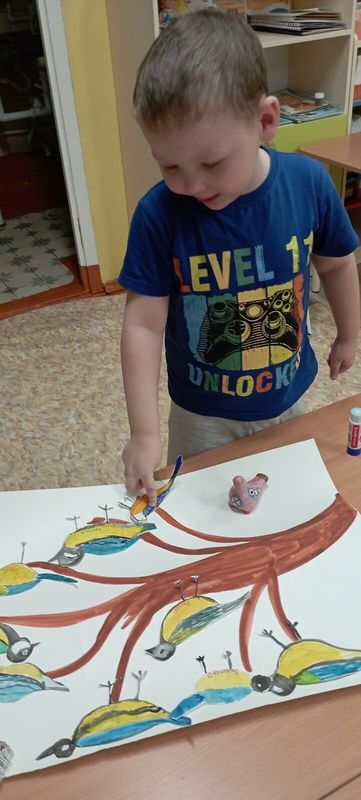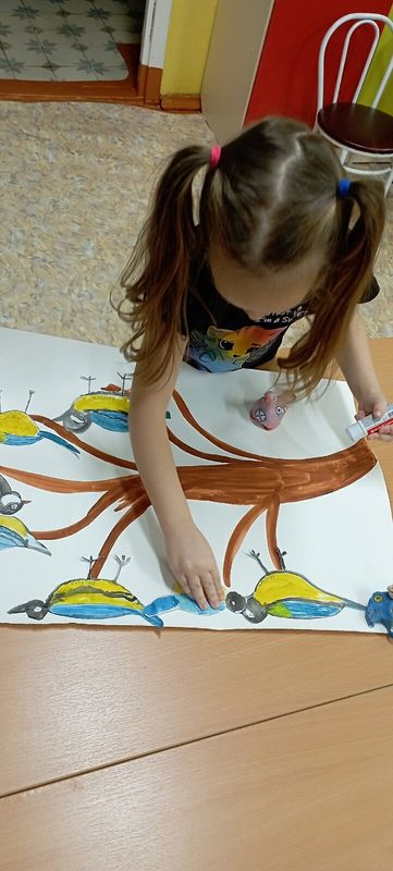 А в заключение, ребята с удовольствием раскрасили грудку птице... с помощью своих пальчиков! И отправились на улицу - кормить синичек вкусняшками!а